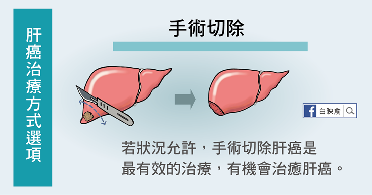 手術切除是最有效的治療方式,有機會治癒肝癌。若患者狀況允許,應該接受手術治療。