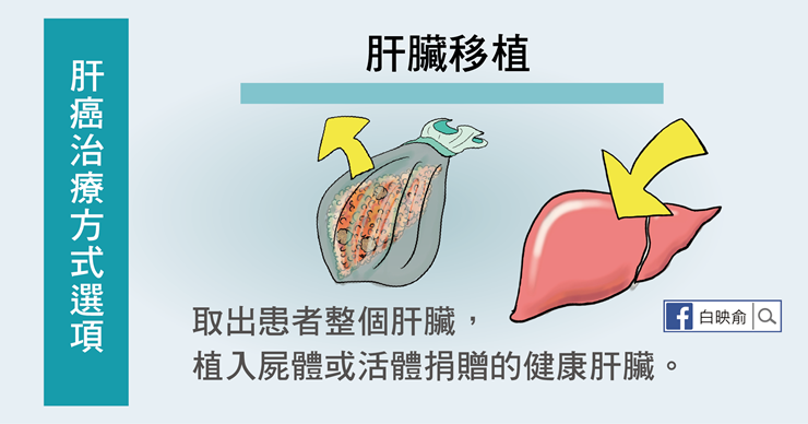 若狀況允許符合規定,且有屍體或活體捐贈的健康肝臟,也可考慮以肝臟移植治療肝癌。