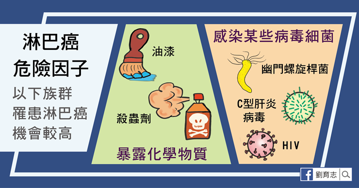 若常暴露於油漆、殺蟲劑等化學物質,或有某些病毒細菌感染,較容易得到淋巴癌。