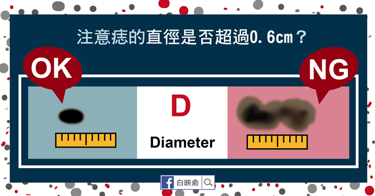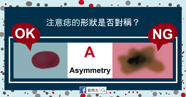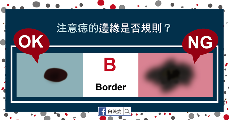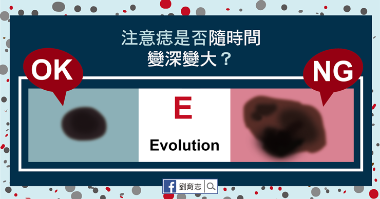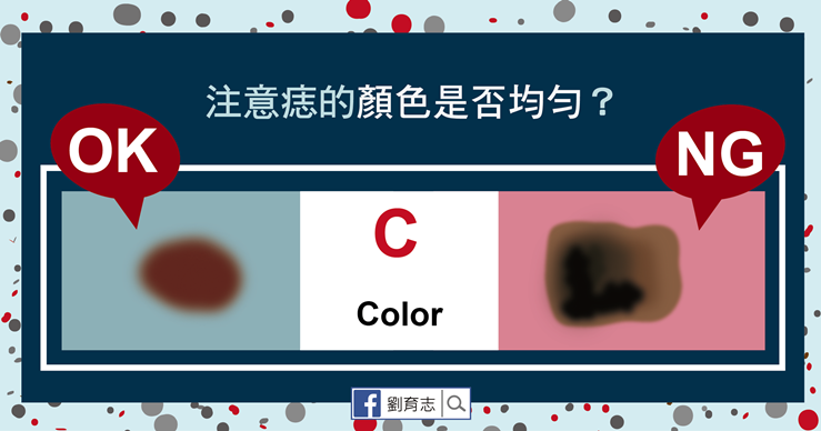 顏色是否很不均勻,或一顆痣裡就有黑、紅、淡色等不同顏色,或顏色跟幾年前比較的話變得愈來愈深。