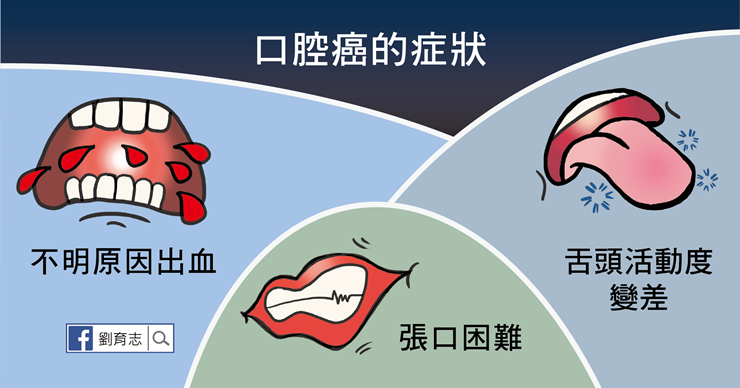 若口腔常因為不明原因出血,舌頭活動度變差,或困難張口,可能是口腔癌的症狀。