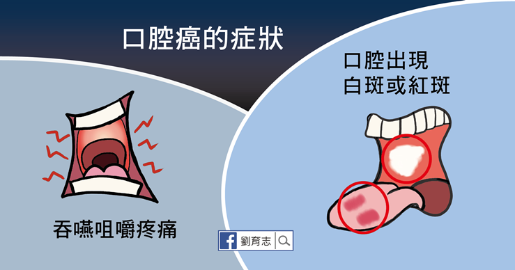 吞嚥咀嚼疼痛,或口腔出現白斑或紅斑,也都是口腔癌的症狀。