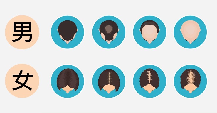 平平都是雄性禿,男生和女生的外觀變化大不同。男性雄性禿的特色在於前額髮線愈來愈退縮,另外頭髮稀疏的頭頂演變到大區域完全沒有頭髮的情形比較常見。反之女性的雄性禿主要的變化在頭頂,頭髮會逐漸稀疏,但是不容易看到整塊頭皮光溜溜的情形。