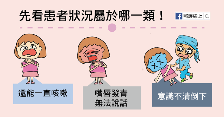 當患者還能一直咳的時候,就鼓勵患者繼續咳,直到排出卡住的異物為止。