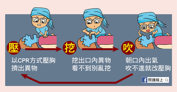 若患者已經意識不清倒下,你需要記得施救口訣是壓、挖、吹。