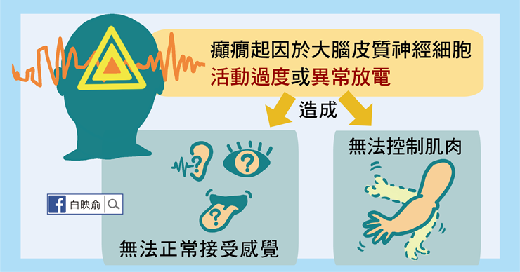 癲癇起因於大腦皮質神經細胞活動過度或異常放電,造成暫時性無法控制肌肉,因此肢體可能會大幅度抖動。也可能造成暫時性無法接收感覺,因此聽不見、看不見、聞不到。