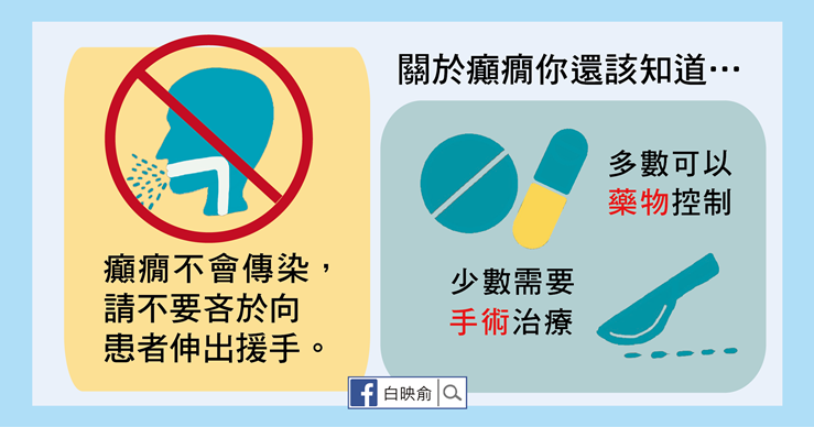 多數患者可以用藥物控制癲癇,少數需要用手術治療,醫師會視情況治療患者。請記得,癲癇不會傳染,請不要吝於向患者伸出援手,也不要恐懼的心態面對患者,以為他們是惡靈附身。