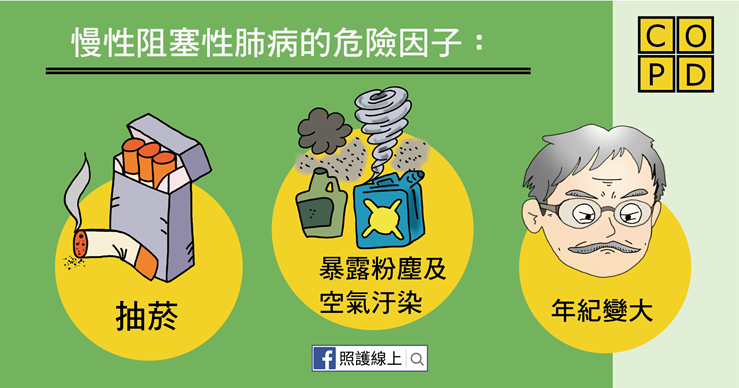 吸菸是最主要的危險因子,吸菸時間愈久或吸入量愈多都會讓人更容易罹患COPD。