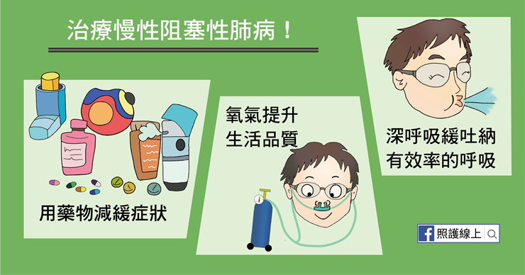 因此,請按照醫師指示,用藥物減緩症狀,用氧氣提升生活品質,並做肺部復健,用有效率的方式呼吸。