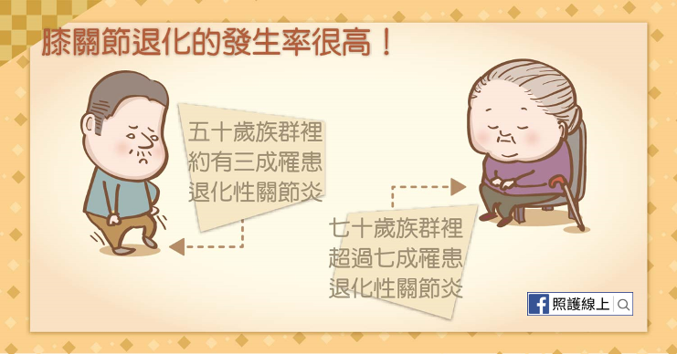 高齡銀髮族裡的退化性關節炎比例相當高,超過七十歲有約七成的人罹患退化性膝關節炎。