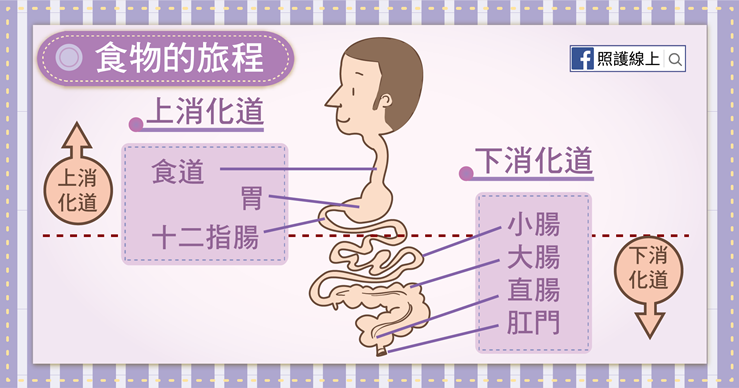 首先,消化道就是食物從嘴巴到達肛門排出,經過好幾公尺的這趟路途!包括了食道、胃、小腸(十二指腸、空腸、迴腸)、大腸、直腸、肛門。