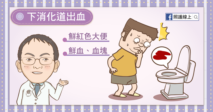 患者可能會解鮮紅色的大便,或直接解出鮮血及血塊。畢竟下消化道距離肛門比較近,流出的血看來會比較新鮮。