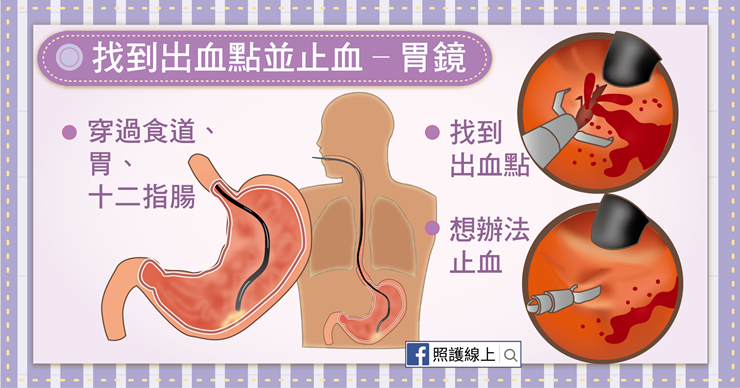 無論患者是因為吐血或解血便送醫,也無論患者是上消化道或下消化道出血,到院後醫師的第一要務都是「穩定患者生命徵象」,畢竟失血過多會造成休克,神智不清或失去意識,危及性命安全。