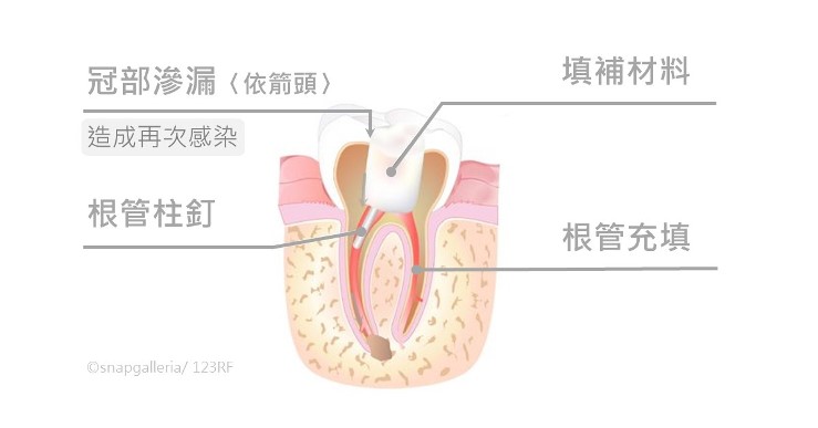 因為牙科填補材料有其可填補範圍的極限以及適應症,若遇到缺損範圍過大的牙齒,則超過填補材料的極限。雖然一開始有機會填補起來,隨著反覆功能性的使用,這些填補材料可能會崩解,造成牙冠部分滲漏,又會讓口腔內的細菌經由滲漏的縫隙侵入,造成牙髓-牙本質複合系統再次感染。更嚴重的,不僅是填補材料崩解,而牙齒本身也會崩裂。
