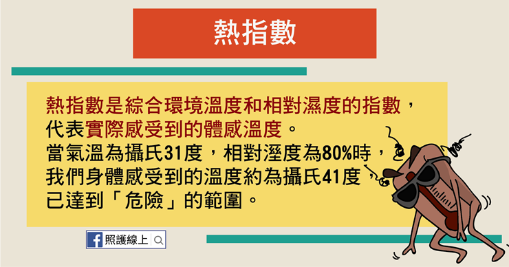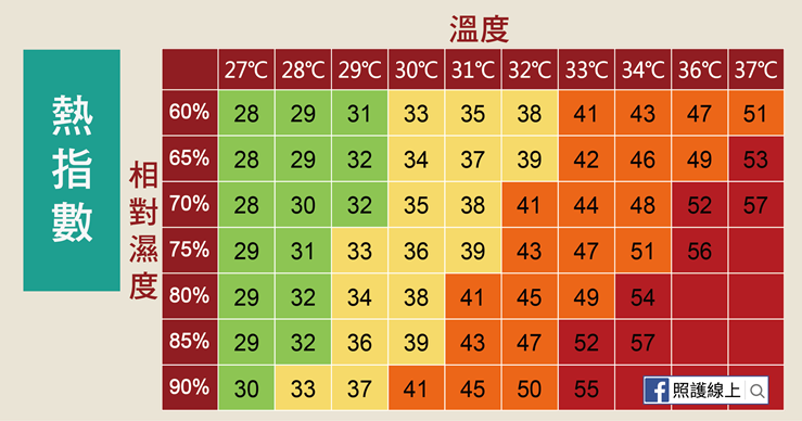 當氣溫為攝氏31度,相對溼度為60%時,我們身體感受到的溫度約為攝氏35度,這時就需要格外注意。