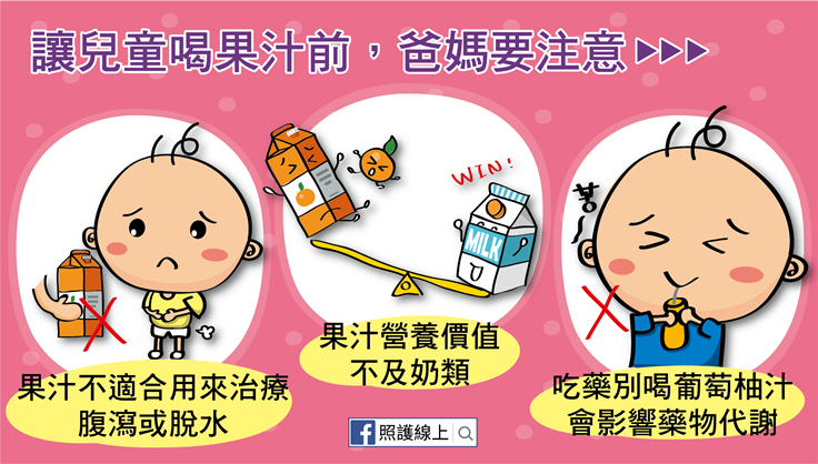 另外,有些人會將果汁當作補充營養的治療方式之一,但其實果汁不適合作為腹瀉、脫水時的治療。