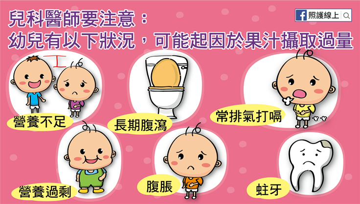 另外兒科醫師要注意的是,若小孩有營養失衡的狀況,不論是營養過剩或營養不足,要注意是否家長讓孩子喝了太多果汁。