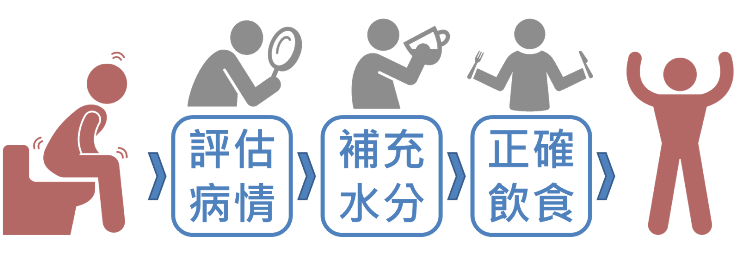 ● 持續評估症狀與脫水的嚴重度,是否需要立即就醫。