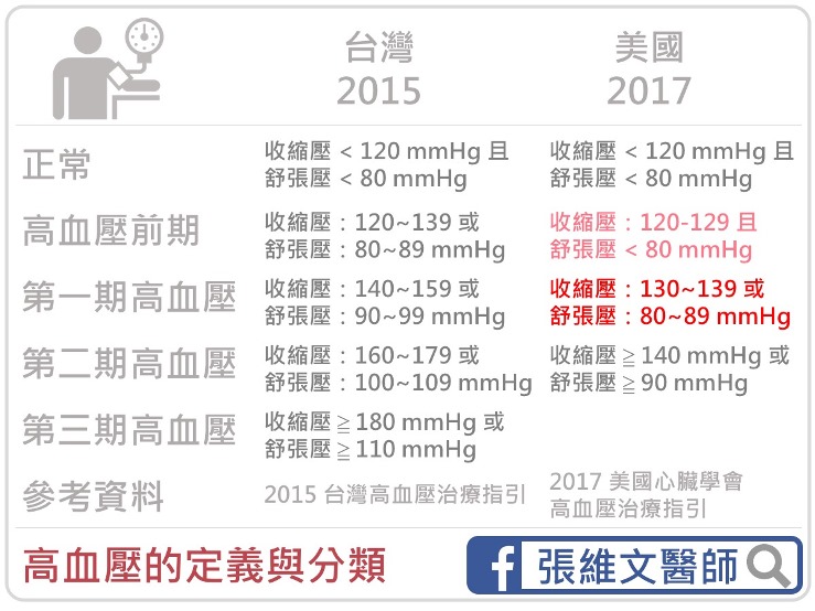 而美國心臟學會在2017年公布最新版的治療指引,其中值得注意的是,當收縮壓超過 130 或舒張壓超過 80 mmHg 時,就代表有高血壓。