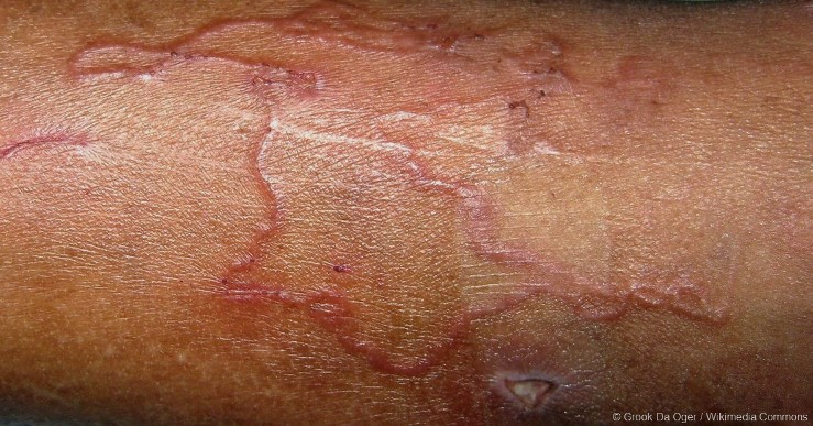皮膚幼蟲移行症最大的特色在於皮膚會出現彎曲的細條紅疹,隨著每一天寄生蟲在皮膚下方潛行,細條紅疹會不斷地向前延伸。