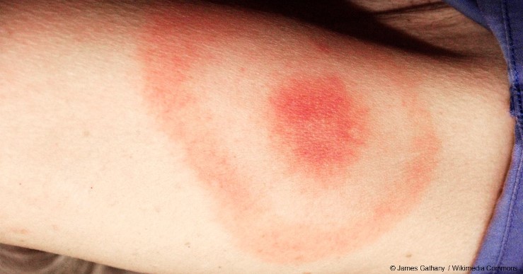 萊姆病最大的特色在於皮膚會出現遊走性紅斑,典型的遊走性紅斑呈現外圈泛紅、中圈泛白、以及紅色靶狀中心的特色。