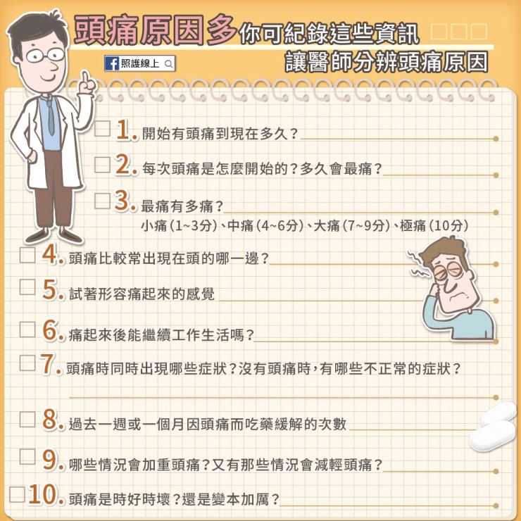 大部分頭痛雖然是良性疼痛,但頭痛的發生對我們身體而言,就是一種警報,輕則讓你知道不要再操勞了、好好休息;嚴重則在告訴我們腦部或神經系統出了狀況。不管是哪一種提醒,希望大家都不要輕易忽視「頭痛」出現的用心良苦!