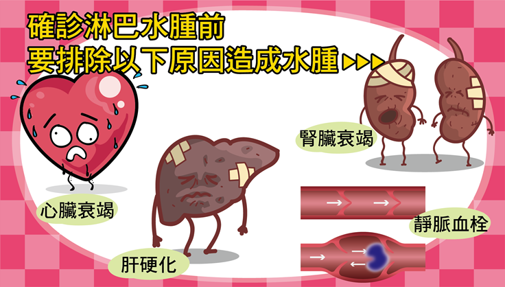 確診前先要確定這樣的水腫不是來自於心臟衰竭、腎臟衰竭、肝硬化、或血管內血塊阻塞(血栓)