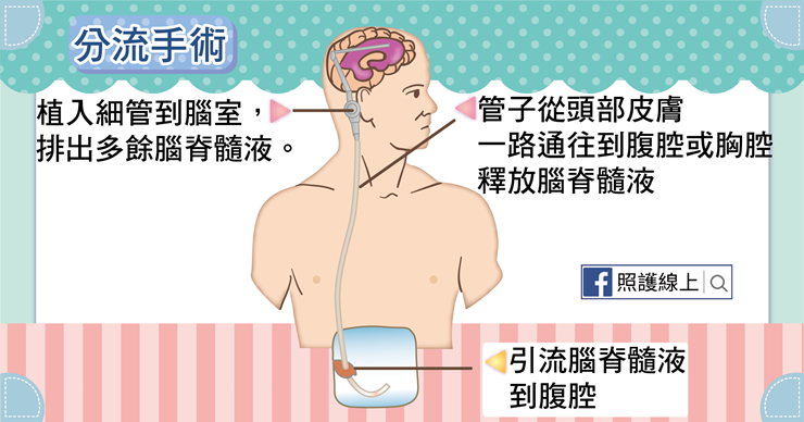 所以分流手術代表著把過多的腦脊髓液疏濬到身體他處,因此能緩解腦部被壓迫後帶來的症狀,但不能治癒這個疾病。如果對患者有用的話,分流器可以無限期地保持在原位。