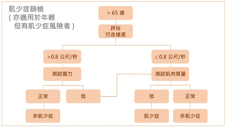 台灣已邁向高齡化社會,如何成功的老化,是我們努力的目標。肌少症是老年族群失能、跌倒、住院甚至死亡的危險因子。因此,若遇到有肌少症可能的老年人,可進一步篩檢,並給予適當的飲食及運動建議。積極介入,以減少未來併發症的產生,亦能促進老人家的生活品質,達到成功老化的目標。