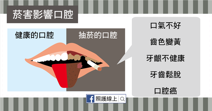 對口腔來說,香菸的影響也很直接。有菸癮者會口氣不好,齒色變黃,牙齦不健康而牙齒鬆脫,連植牙失敗率都比較高。