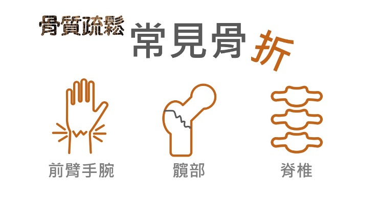 1. 低創傷性骨折:低能量傷害就造成骨折。此骨折部位以前臂手腕、髖部或脊柱壓迫性骨折較為常見。