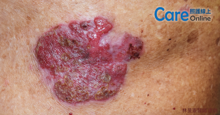1. 皮膚鱗狀細胞癌的外觀大多是紅棕色的粗糙斑塊,造型與黑色素瘤和基底細胞癌有所不同。