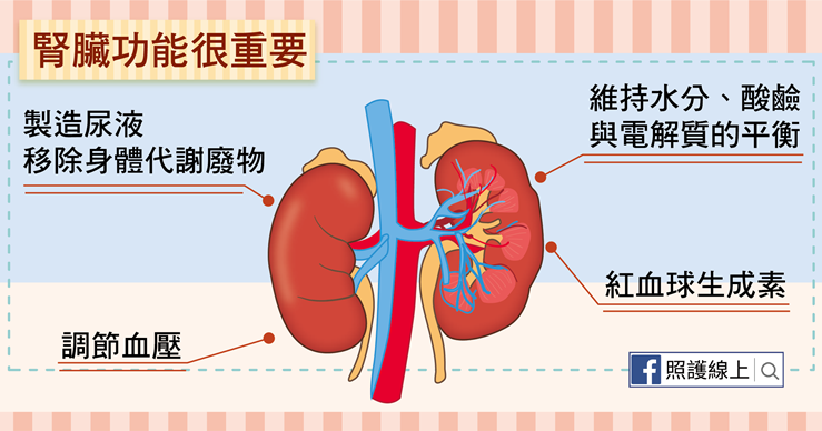 腎臟能過濾血液中的水分與身體廢物,並製作出尿液排出體外。如果腎臟功能變差,體內會堆積過多液體、電解質、廢物,那就對身體有害,我們稱為慢性腎臟病。