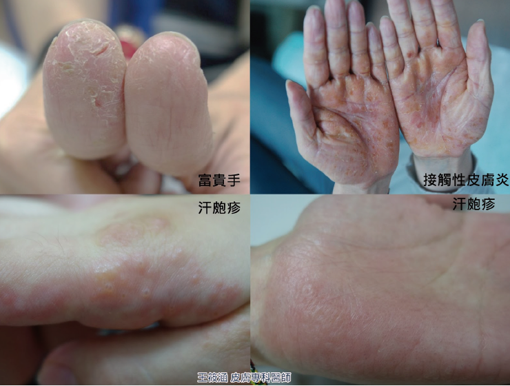● 「富貴手」和「汗皰疹」都是「手部濕疹」,仍建議由專業的醫師來確立診斷,並排除黴菌感染或乾癬等其他疾病的可能性。