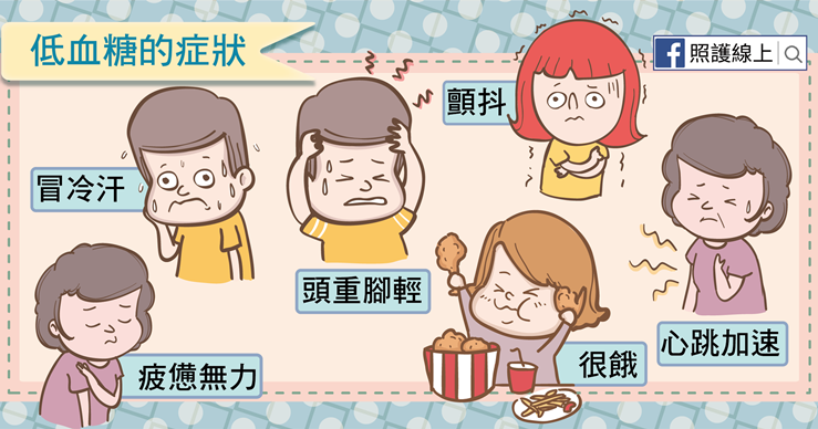 而血糖過低的患者,可能會疲累、無力、顫抖、冒冷汗、飢餓、頭重腳輕、難以說話。