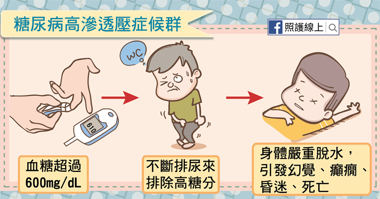★ 缺乏控制的糖尿病:若缺乏按時服用藥物控制血糖及在家監控血糖的習慣,血糖值就可能飆高到失控的程度