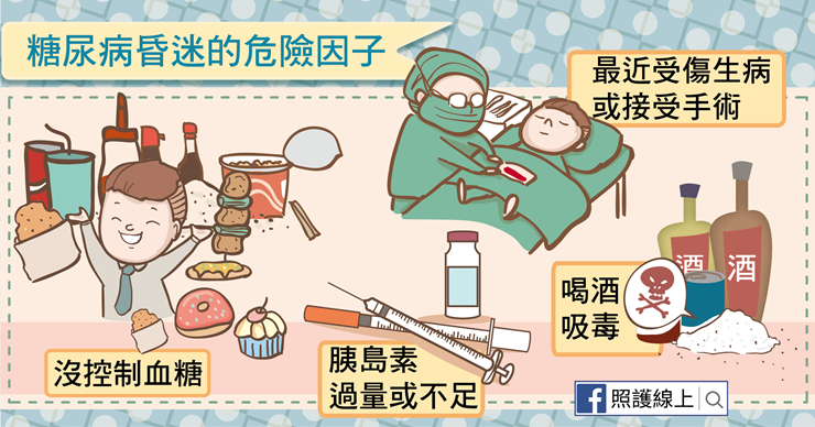 ★ 最近生病、受傷、或接受手術:這些時間點都是血糖更容易爬升的時候,有機會造成高血糖而引發昏迷。