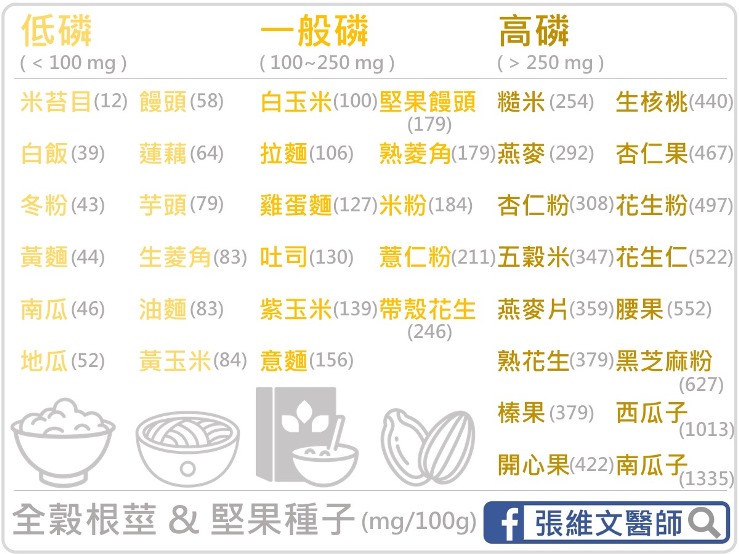 在此將常見食物的含磷量整理如下,供大家參考。