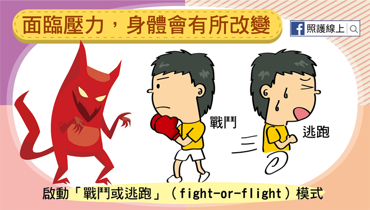 我們不說壓力到底對人是助力或阻力,先來看看我們身體真實的反應!現代人的壓力雖然常是心理層面的,但我們面對心理威脅時,就像過去遠祖們遇上野獸攻擊、遭遇危險一般,身體會上緊發條,啟動身體「戰鬥或逃跑」(fight-or-flight)模式。