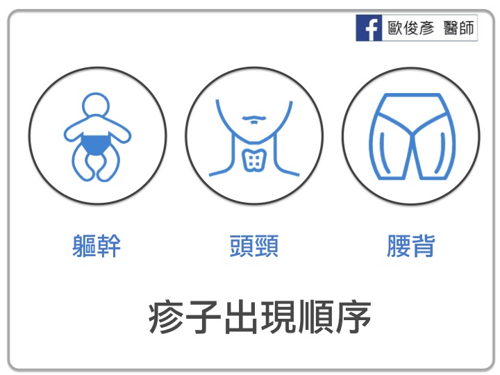 退燒後開始從臉和軀幹出紅疹