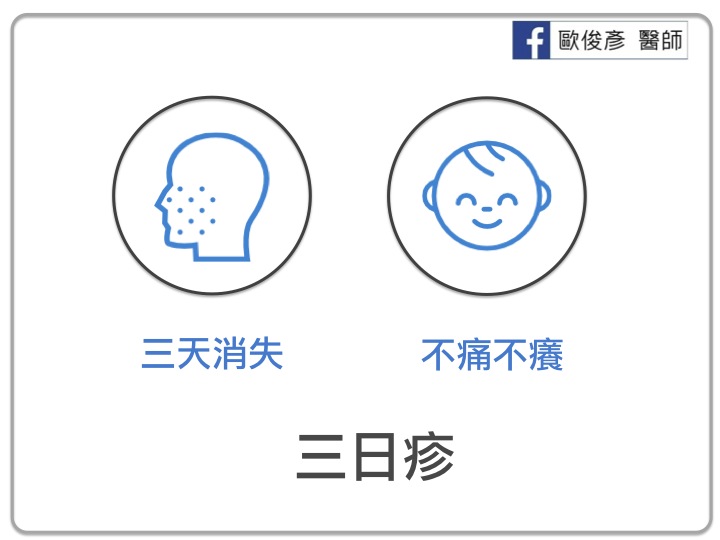 通常6個月大~2歲間的寶寶,因為不會表達自己的不舒服,所以一旦發燒,就只能由焦急的父母親向我形容看到寶寶的狀況。若是寶寶忽然間的高燒,沒有其他特別的症狀,退燒後精神又好像沒有生病一樣,通常我會告訴父母親「寶寶可能得到玫瑰疹!」