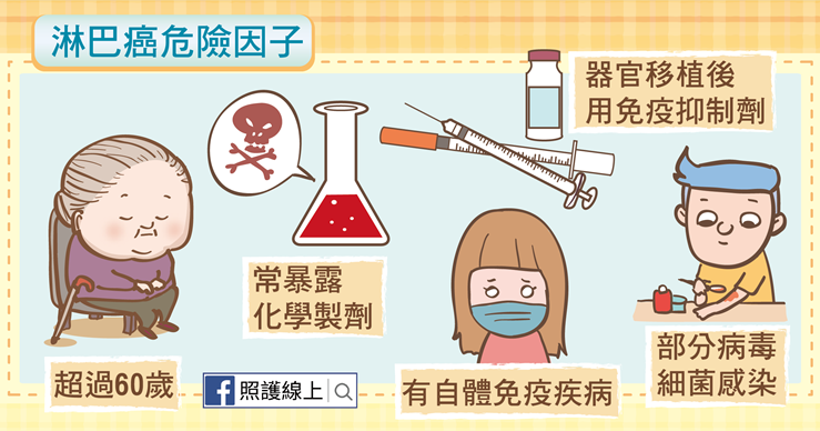 另外,由於淋巴癌起源於負責免疫的淋巴系統細胞變化,不難理解「免疫狀況」的改變,可能就是造成淋巴癌的原因之一。像是有以下狀況: