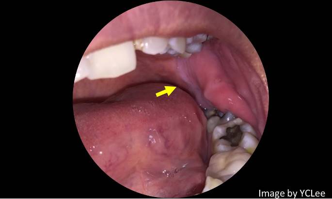 下圖是舌部的白斑,有部分研究顯示舌部的白斑可能有較高的惡性變化機率。