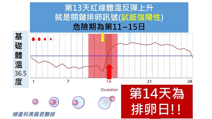 首先給大家看女性每月體溫變化圖(basal body temperature),前低溫後高溫。