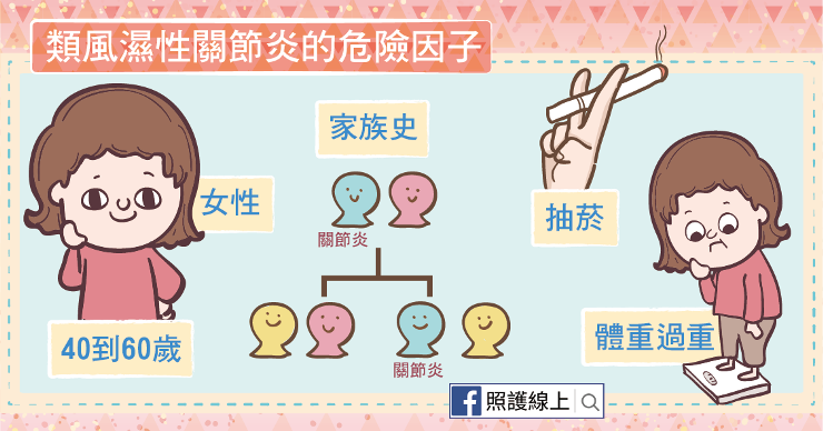 還有,抽菸會讓類風濕性關節炎的發作機會上升,有菸癮者發病機會是無吸菸習慣者的四倍。另外這個病也與家族史、體重過重等因素有關。