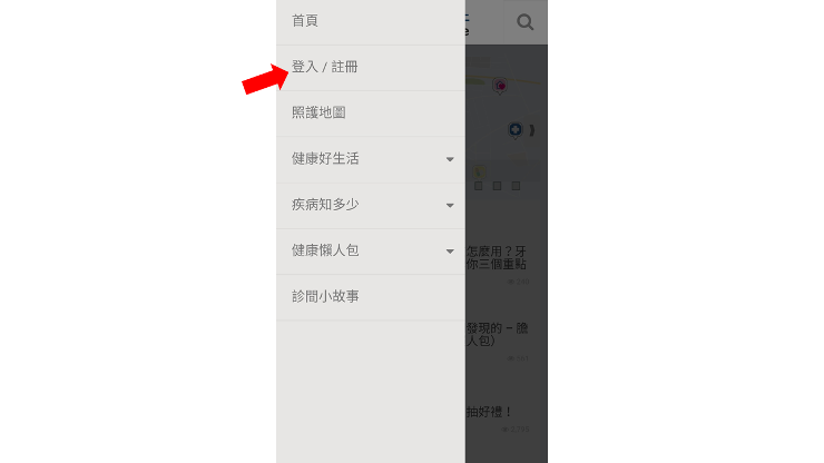 請點擊左上方這個按鈕,就能找到「登入/ 註冊」
