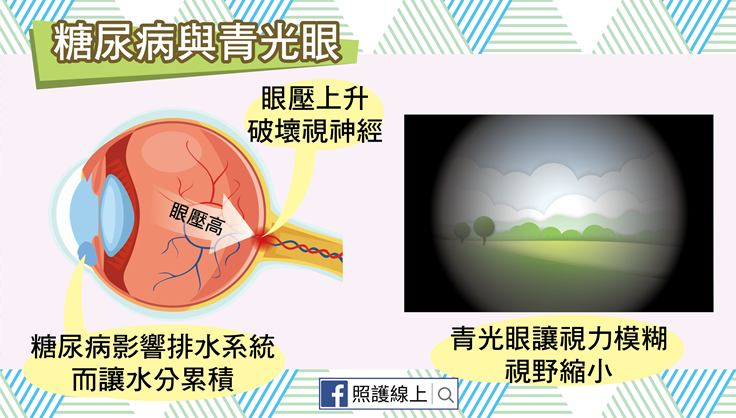 既然要看見是這麼複雜,壞掉一些些地方都很麻煩。相信很多人都曾聽說:「得了糖尿病之後,眼睛會壞掉!」糖尿病對身體健康帶來的諸多影響之中,眼睛的問題絕對不容小覷,有糖尿病黃斑水腫(diabetic macular edema)、糖尿病視網膜病變(diabetic retinopathy)、白內障(cataracts)、及青光眼(glaucoma),患者持續視力退化,甚至完全失明。
