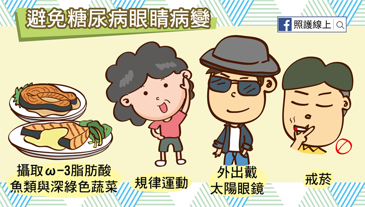 最後再補充幾件讓糖尿病患者保護眼睛時可注意的事項: