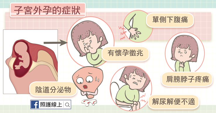然而,子宮外孕的症狀與許多腸胃不適或泌尿道問題類似,因此在患者尚未做其他檢查之前,單靠症狀本身是難以確診為子宮外孕的。假設患者的症狀是大量的陰道出血,並有突發性的腹部大痛,看起來很蒼白,簡直快昏倒的樣子的話,且是個育齡女性的話,就要非常注意,可能是子宮外孕,且輸卵管破裂的徵兆啦!