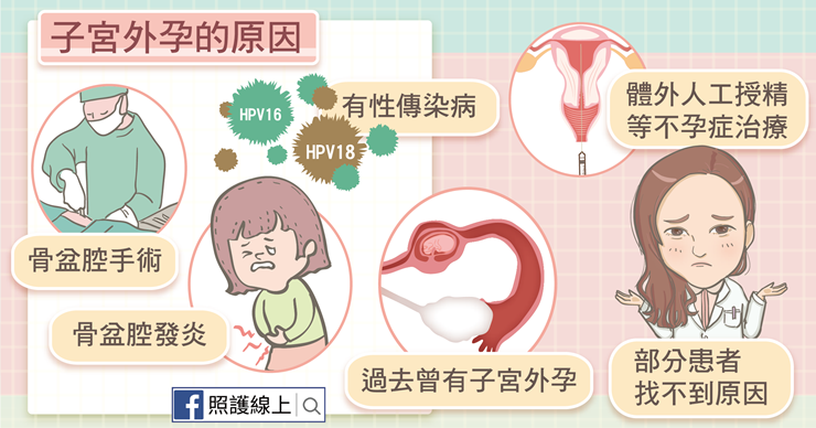 至於為什麼會發生子宮外孕,在部分患者身上可能找不到原因,但整體來說,如果輸卵管因為感染、手術等事件有疤痕的話,運輸受精卵的路途就不夠「通暢」,子宮外孕的機會比較高。像是: